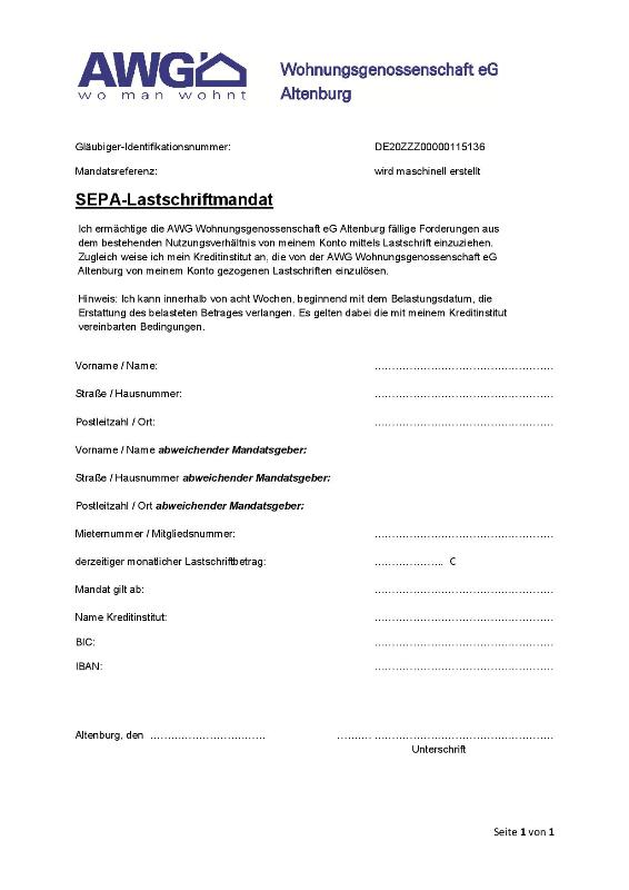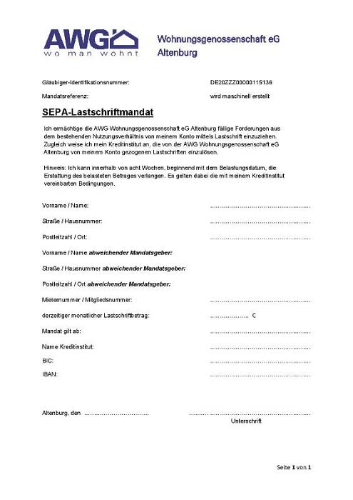 SEPA-Mandat zur Änderung und Bekanntgabe Ihrer Kontodaten.